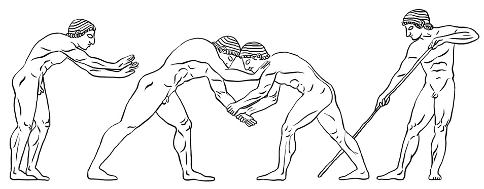 Illustration: Relief mit Ringern, Marmor, ca. 510 v.Chr., Archäologisches Museum von Athen.