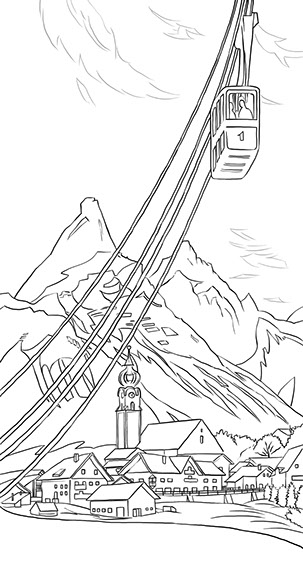 Illustration: Tourismusplakat, Ehrwald, Zugspitzbahn, Tyrol, Austria